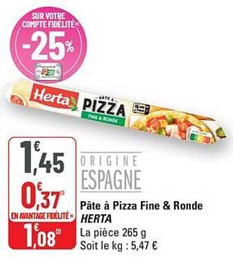 Offre de Pâte À Pizza Fine & Ronde Herta chez G20