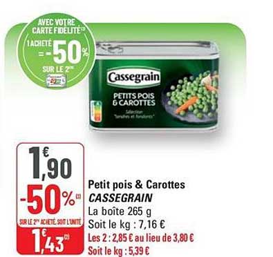 Découvrez l'offre de Petit Pois & Carottes Cassegrain chez G20! Cette offre fantastique est maintenant disponible dans le nouveau catalogue de G20. Profitez de cette occasion et économisez considérablement sur votre achat.