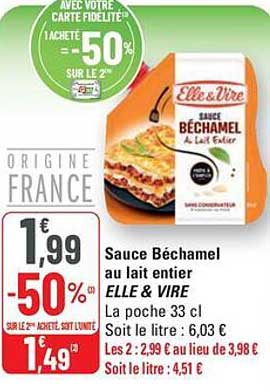 Offre de Sauce Béchamel Au Lait Entier Elle & Vire chez G20
