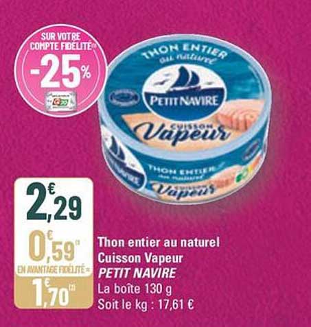 Offre de Thon Entier Au Naturel Cuisson Vapeur Petit Navire chez G20