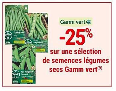 Si vous êtes passionné de jardinage ou souhaitez simplement ajouter des légumes frais à votre alimentation, cette offre de Gamm vert est faite pour vous ! Profitez de -25% sur une sélection de semences de légumes secs, une occasion en or pour cultiver vos propres légumes avec une qualité exceptionnelle.