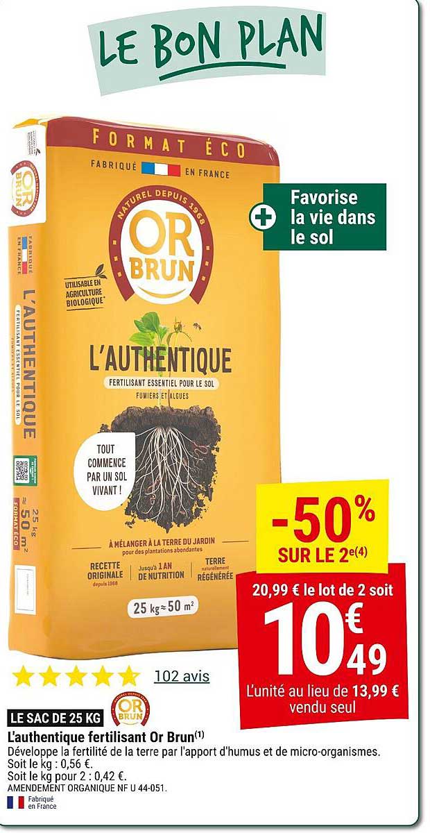Découvrez dès maintenant la offre L'Authentique fertilisant Or Brün dans le catalogue de Gamm vert. Cette offre est valable du 05/11/2025 au 16/11/2025.