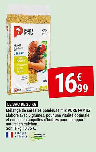 Découvrez dès maintenant la offre Mélange de céréales pondeuse mix PURE FAMILY 5 GRAINES dans le catalogue de Gamm vert. Cette offre est valable du 09/10/2024 au 20/10/2024.