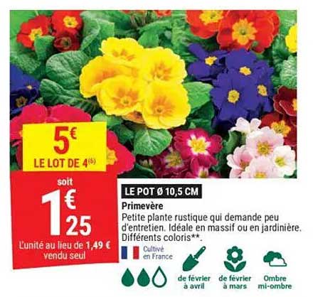Découvrez la superbe offre de Primevère dans le nouveau catalogue de Gamm vert. En plus de cette offre, vous trouverez de nombreuses autres réductions attrayantes. Vous pouvez facilement commander le Primevère en ligne via le site web de Gamm vert ou l'acheter dans un magasin près de chez vous.