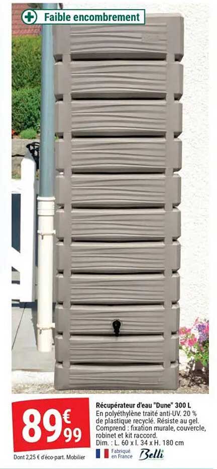 Découvrez l'offre de Récupérateur D'eau "Dune" 300 L chez Gamm vert! Cette offre fantastique est maintenant disponible dans le nouveau catalogue de Gamm vert. Profitez de cette occasion et économisez considérablement sur votre achat.
