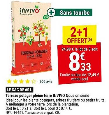 Vous voulez être informé immédiatement dès que le Terreau Potager Pleine Terre Invivo Nous On Sème est en promotion? Inscrivez-vous à notre alerte d'offres. Vous recevrez une notification dès que le produit sera disponible à un prix avantageux.