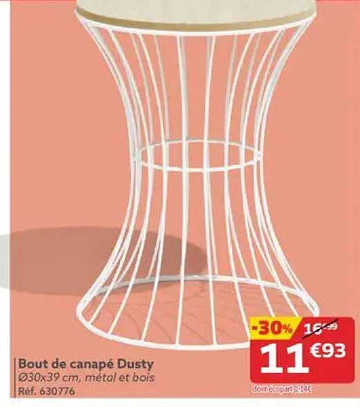 Découvrez l'offre de Bout De Canapé Dusty chez Gifi! Cette offre fantastique est maintenant disponible dans le nouveau catalogue de Gifi. Profitez de cette occasion et économisez considérablement sur votre achat.