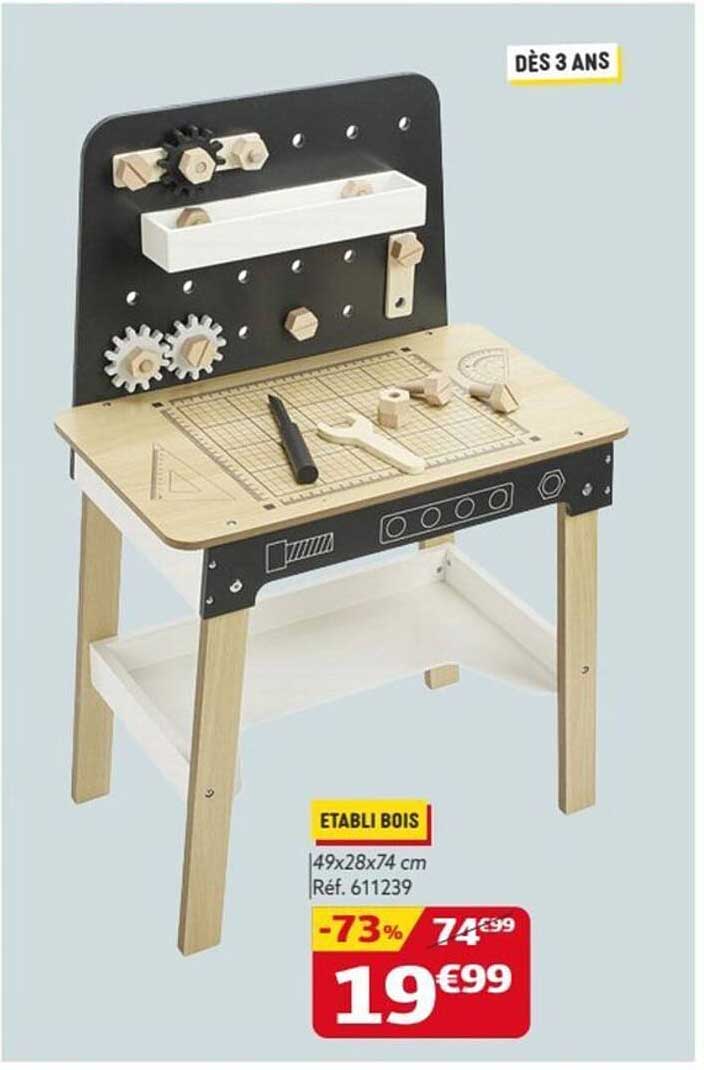 Découvrez l'offre de Etabli Bois chez Gifi! Cette offre fantastique est maintenant disponible dans le nouveau catalogue de Gifi. Profitez de cette occasion et économisez considérablement sur votre achat.