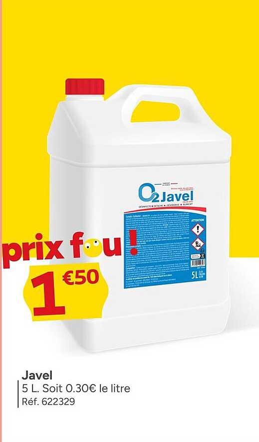 Vous cherchez à faire le plein de produits ménagers efficaces à un prix imbattable ? Ne ratez pas cette offre exceptionnelle sur le Javel O2 ! Avec 5 litres à seulement 1,50€, soit 0,30€ le litre, c'est l'occasion rêvée d'approvisionner votre maison avec un produit indispensable. Que ce soit pour désinfecter, nettoyer ou déodoriser, ce javel répondra à tous vos besoins en matière d'entretien. Et si vous avez des enfants ou des animaux, sachez que sa formule est conçue pour être efficace tout en restant sécuritaire lorsqu'elle est utilisée correctement.