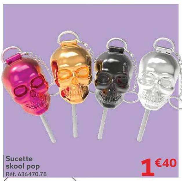 Découvrez l'offre de Sucette Skool Pop chez Gifi! Cette offre fantastique est maintenant disponible dans le nouveau catalogue de Gifi. Profitez de cette occasion et économisez considérablement sur votre achat.