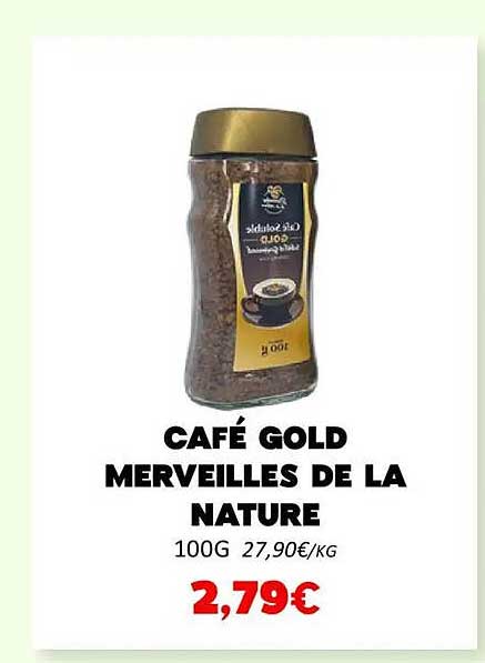 Amateurs de café, préparez-vous à être conquis par l’offre exceptionnelle sur le Café Gold Merveilles de la Nature. Disponible sur cette page, ce café soluble fait partie intégrante de vos moments de détente et de convivialité. Avec un rapport qualité-prix imbattable, cette promotion est parfaite pour les passionnés de café à la recherche d'une tasse savoureuse sans se ruiner.