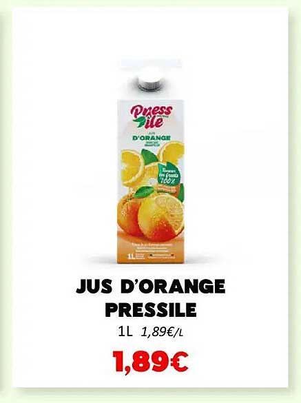 Découvrez le délice frais et vitaminé du jus d'orange pressé, parfait pour bien commencer la journée. Avec cette offre exceptionnelle, savourez un litre de Pure Press à seulement 1,89€, une occasion à ne pas manquer pour les amateurs de jus naturels.