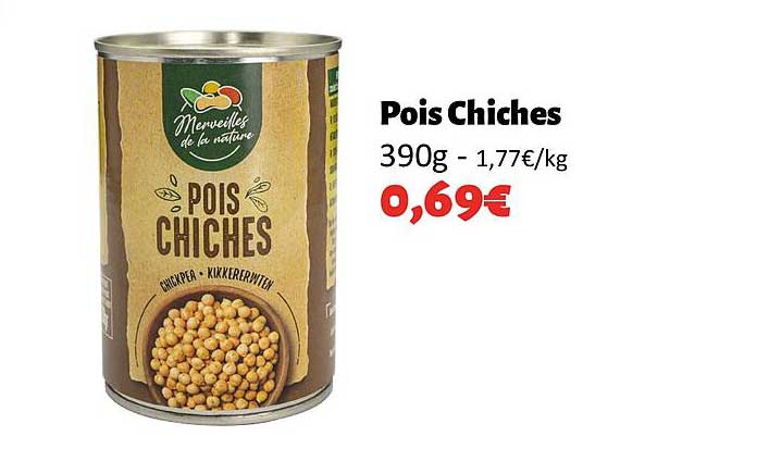 Découvrez notre promotion exceptionnelle sur les pois chiches, un aliment nutritif incontournable. Parfaits pour vos plats chauds ou froids, les pois chiches sont riches en protéines et en fibres, ce qui en fait un choix idéal pour une alimentation saine et équilibrée.
