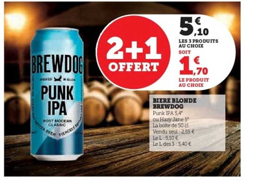 Découvrez l'incroyable promotion sur la bière blonde Brewdog ! Du 13 au 25 mai 2025, profitez de notre offre spéciale : pour l'achat de trois canettes, la moins chère est offerte ! Avec cette offre, chaque produit vous revient à seulement 1,70 €, une occasion en or pour les amateurs de bonne bière.