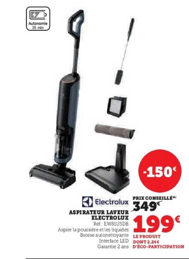 Découvrez l'aspirateur laveur Electrolux, le compagnon idéal pour un nettoyage efficace à domicile. Conçu pour aspirer poussière et liquides, cet appareil allie performance et simplicité d'utilisation. Avec une autonomie de 35 minutes, il est parfait pour les petites et grandes surfaces. Ne ratez pas cette offerte exceptionnellement réduite qui vous permettra de faire briller votre intérieur sans effort.