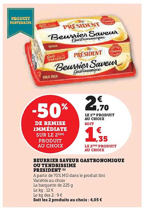 Offre de Beurrier Saveur Gastronomique Ou Tendrissime President chez Hyper U