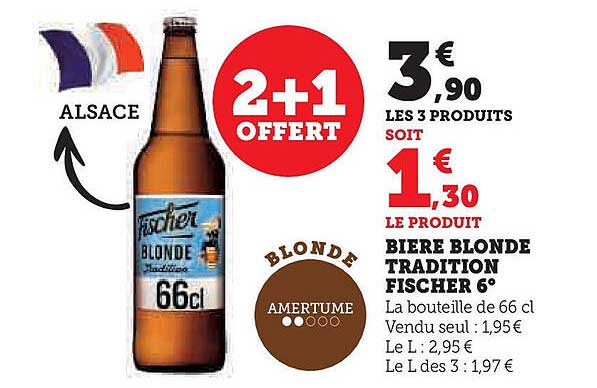 Profitez d'une offre exceptionnelle sur la Bière Blonde Tradition Fischer 6°. D'une fraîcheur inégalée, cette bière est parfaite pour accompagner vos réunions entre amis ou vos soirées d'été. Cette promotion est valable du 15 au 28 septembre 2025, ne la manquez pas !