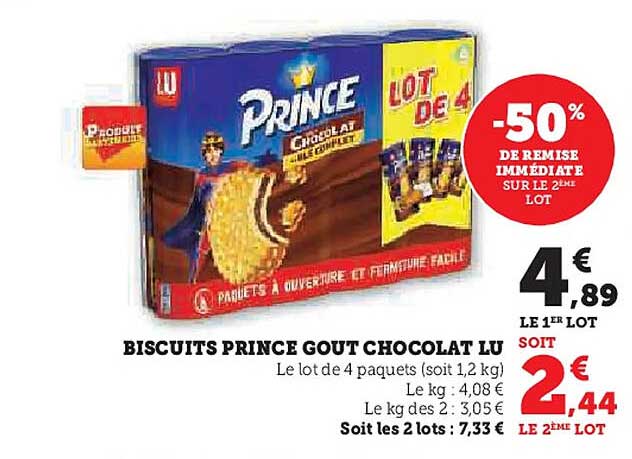 Offre de Biscuits Prince Gout Chocolat Lu chez Hyper U