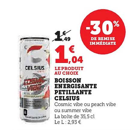 Découvrez l'offre de Boisson Energisante Petillante Celsius chez Hyper U! Cette offre fantastique est maintenant disponible dans le nouveau catalogue de Hyper U. Profitez de cette occasion et économisez considérablement sur votre achat.
