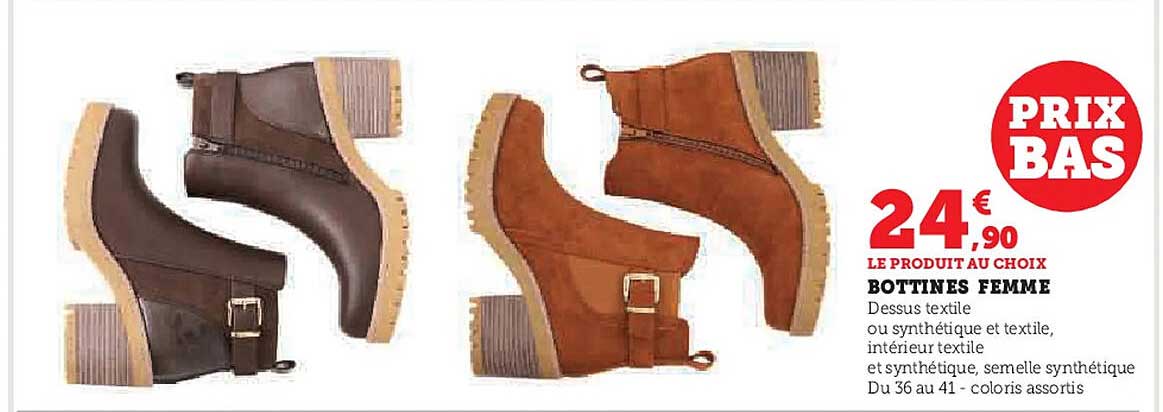 Découvrez l'offre de Bottines Femme chez Hyper U! Cette offre fantastique est maintenant disponible dans le nouveau catalogue de Hyper U. Profitez de cette occasion et économisez considérablement sur votre achat.