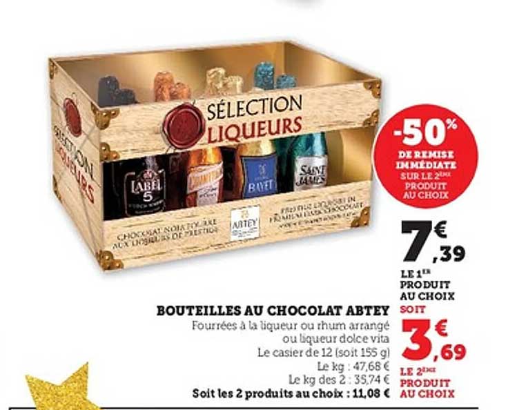Découvrez les BOUTEILLES AU CHOCOLAT ABTEY, un délice pour les amateurs de liqueurs. Parfaites pour les apéritifs entre amis ou les soirées festives, ces bouteilles de liqueur allient douceur et onctuosité. Profitez de cette incroyable promotion, valable jusqu'au 2 novembre, et savourez une expérience gustative unique.