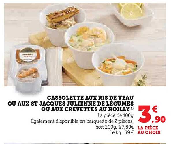 Découvrez l'offre de Cassolette Aux Ris De Veau Ou Aux St Jacques Julienne De Légumes Ou Aux Crevettes Au Noilly chez Hyper U! Cette offre fantastique est maintenant disponible dans le nouveau catalogue de Hyper U. Profitez de cette occasion et économisez considérablement sur votre achat.