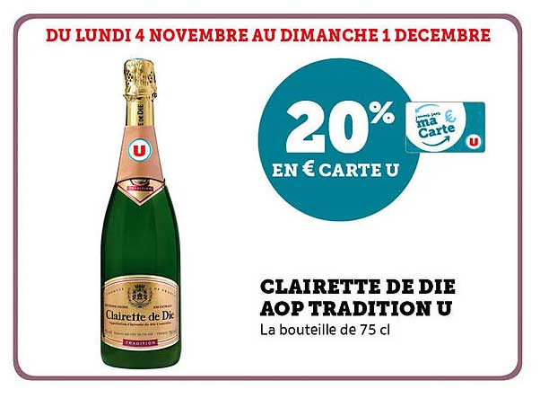 Découvrez l'offre de Clairette De Die Aop Tradition U chez Hyper U! Cette offre fantastique est maintenant disponible dans le nouveau catalogue de Hyper U. Profitez de cette occasion et économisez considérablement sur votre achat.
