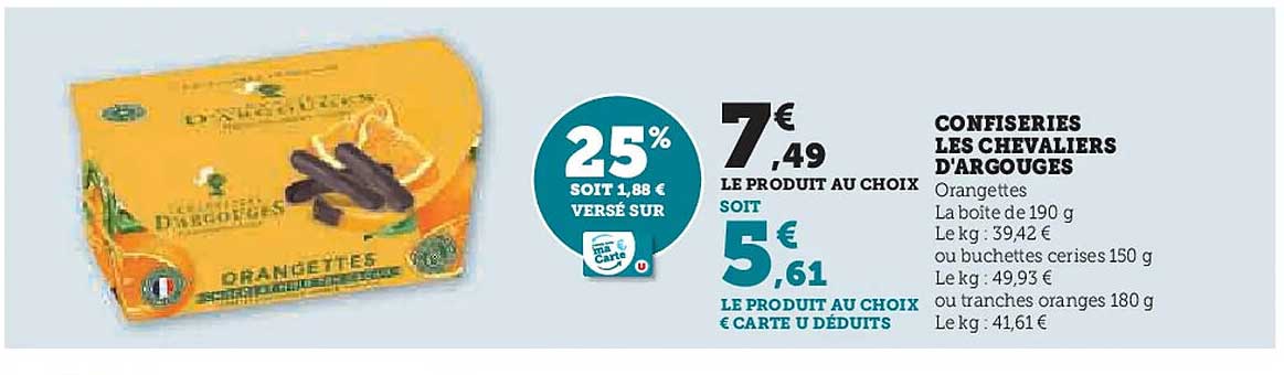 Découvrez l'offre de Confiteries Les Chevaliers D'argouges Orangettes chez Hyper U! Cette offre fantastique est maintenant disponible dans le nouveau catalogue de Hyper U. Profitez de cette occasion et économisez considérablement sur votre achat.