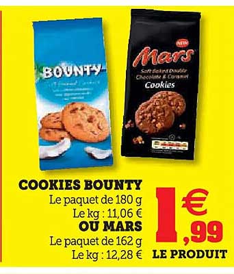 Découvrez dès maintenant la offre COOKIES BOUNTY dans le catalogue de Hyper U. Cette offre est valable du 19/11/2024 au 24/11/2024.