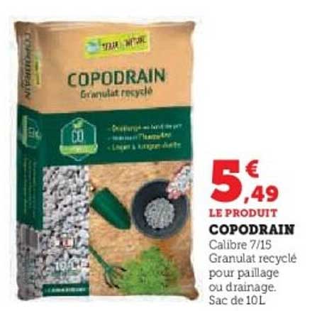 Découvrez notre offre spéciale sur le granulat recyclable COPODRAIN, un produit incontournable pour vos travaux de jardinage et d'aménagement extérieur. Avec un sac de 10L disponible à un prix très attractif, il n'y a jamais eu de meilleur moment pour vous équiper ! Ce granulat est idéal pour le paillage et le drainage, vous offrant ainsi des solutions pratiques et durables.