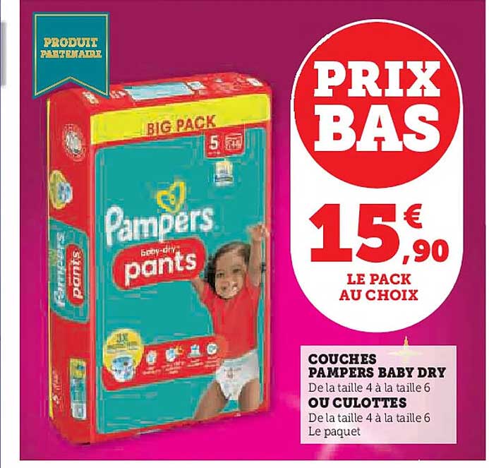 Découvrez la superbe offre de Couches Pampers Baby Dry dans le nouveau catalogue de Hyper U. En plus de cette offre, vous trouverez de nombreuses autres réductions attrayantes. Vous pouvez facilement commander le Couches Pampers Baby Dry en ligne via le site web de Hyper U ou l'acheter dans un magasin près de chez vous.