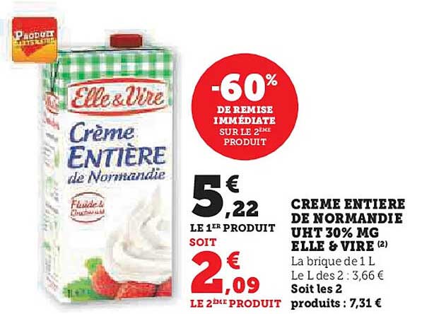 Découvrez l'offre de Crème Entière De Normandie Uht 30% Mg Elle & Vire chez Hyper U! Cette offre fantastique est maintenant disponible dans le nouveau catalogue de Hyper U. Profitez de cette occasion et économisez considérablement sur votre achat.