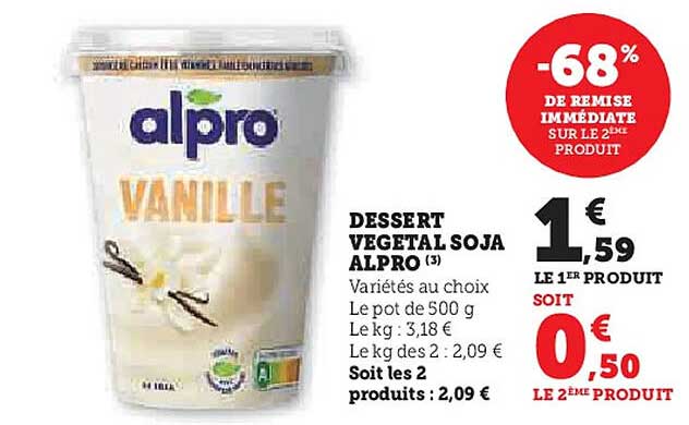 Offre de Dessert Vegetal Soja Alpro chez Hyper U