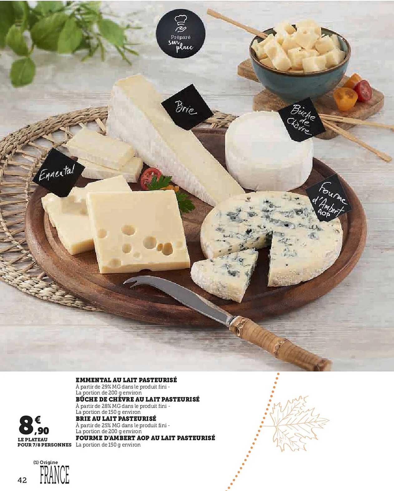 Offre de Emmental Au Lait Pasteurisé Bûche De Chèvre Au Lait Pasteurisé Brie Au Lait Pasteurisé Fourme D'ambert Aop Au Lait Pasteurisé chez Hyper U