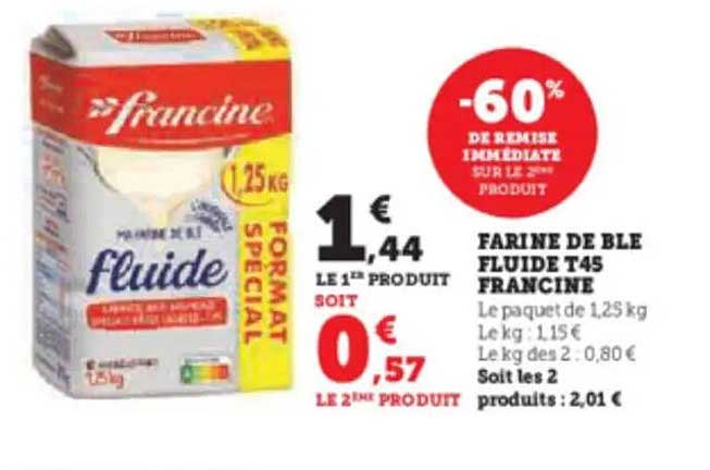 Offre de Farine De Ble Fluide T45 Francine chez Hyper U