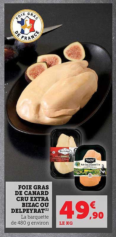 Offre de Foie Gras De Canard Cru Extra Bizac Ou Delpeyrat chez Hyper U