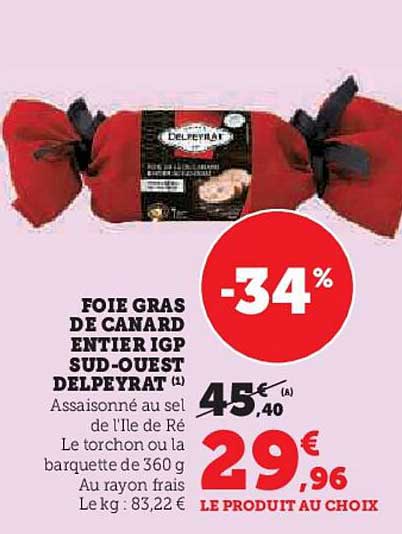 Découvrez l'offre de Foie Gras De Canard Entier Igp Sud-Ouest Delpeyrat chez Hyper U! Cette offre fantastique est maintenant disponible dans le nouveau catalogue de Hyper U. Profitez de cette occasion et économisez considérablement sur votre achat.
