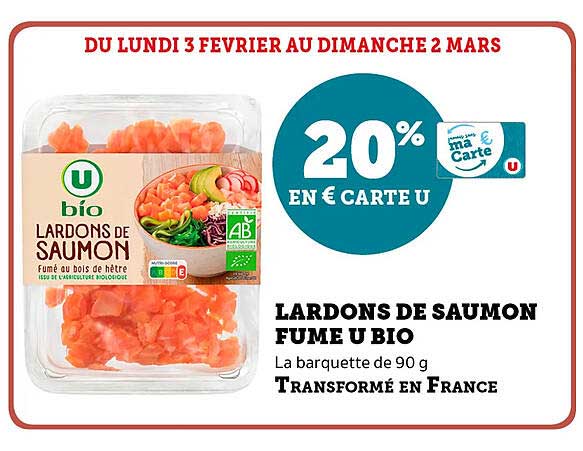 Offre de Lardons De Saumon Fume U Bio chez Hyper U
