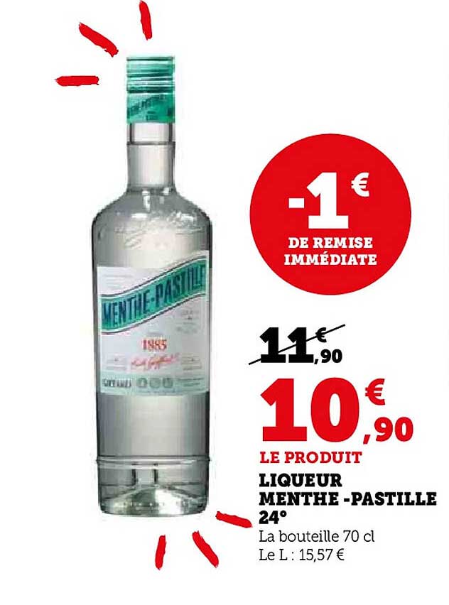 Découvrez l'offre de Liqueur Menthe -Pastille 24° chez Hyper U! Cette offre fantastique est maintenant disponible dans le nouveau catalogue de Hyper U. Profitez de cette occasion et économisez considérablement sur votre achat.