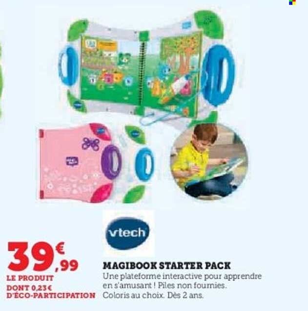 Actuellement, le MAGIBOOK STARTER PACK est proposé à 39,99€, avec une éco-participation de 0,23€. C'est une belle occasion de faire des économies comparé à son prix habituel. Vous ne voudrez pas manquer cette chance d'offrir un outil éducatif de qualité à votre enfant à un prix avantageux.