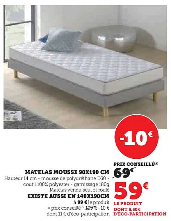 Découvrez l'offre de Matelas Mousse 90X190 Cm chez Hyper U! Cette offre fantastique est maintenant disponible dans le nouveau catalogue de Hyper U. Profitez de cette occasion et économisez considérablement sur votre achat.