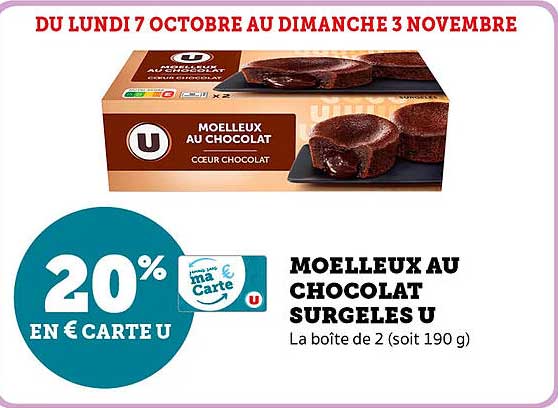 Offre de Moelleux Au Chocolat Surgeles U chez Hyper U