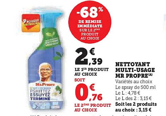 Découvrez l'offre de Nettoyant Multi-Usage Mr Propre chez Hyper U! Cette offre fantastique est maintenant disponible dans le nouveau catalogue de Hyper U. Profitez de cette occasion et économisez considérablement sur votre achat.
