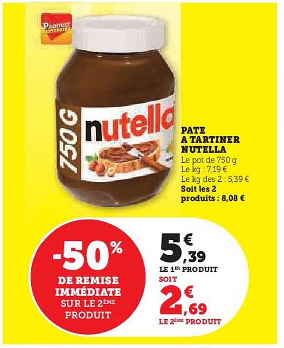 Découvrez la superbe offre de Pate A Tartiner Nutella dans le nouveau catalogue de Hyper U. En plus de cette offre, vous trouverez de nombreuses autres réductions attrayantes. Vous pouvez facilement commander le Pate A Tartiner Nutella en ligne via le site web de Hyper U ou l'acheter dans un magasin près de chez vous.