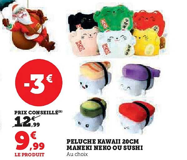 Découvrez l'offre de Peluche Kawaii 20Cm Maneki Neko Ou Sushi chez Hyper U! Cette offre fantastique est maintenant disponible dans le nouveau catalogue de Hyper U. Profitez de cette occasion et économisez considérablement sur votre achat.