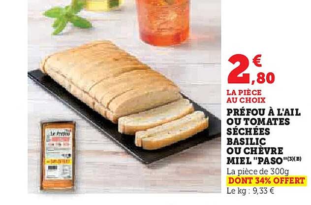 Offre de Préfou À L'ail Ou Tomates Séchées Basilic Ou Chèvre Miel "Paso" chez Hyper U