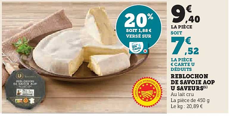 Offre de Reblochon De Savoie Aop U Saveurs chez Hyper U