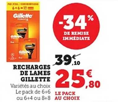 Découvrez une offre sensationnelle sur les recharges de lames Gillette, qui vous permettent de maintenir un rasage impeccable tout en faisant des économies. Pour une durée limitée, ces recharges sont proposées avec une remise immédiate de 34 %, ce qui en fait une occasion à ne pas manquer pour tous ceux qui souhaitent optimiser leur routine de soin.