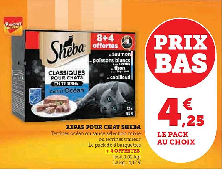 Découvrez l'offre de Repas Pour Chat Sheba chez Hyper U! Cette offre fantastique est maintenant disponible dans le nouveau catalogue de Hyper U. Profitez de cette occasion et économisez considérablement sur votre achat.
