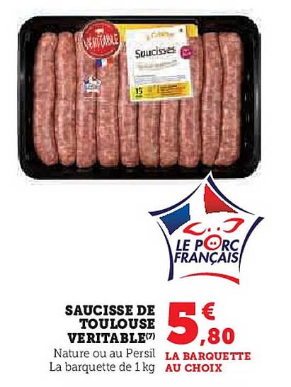 Offre de Saucisse De Toulouse Véritableⓡ chez Hyper U